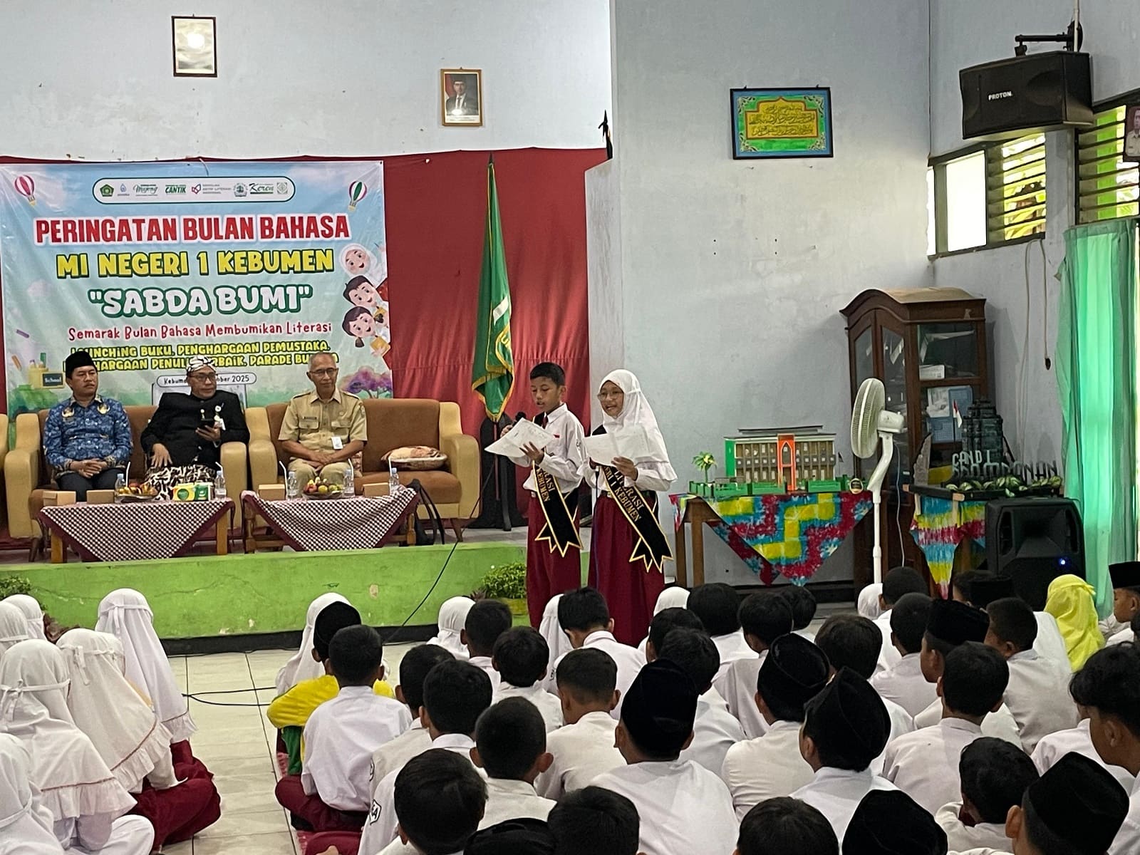 Kebumen – Humas – Dalam semangat memperingati Bulan Bahasa, Madrasah Ibtidaiyah Negeri (MIN) 1 Kebumen menggelar kegiatan bertajuk “Sabda Bumi” Semarak Bulan Bahasa, Membumikan Literasi, pada Selasa 28 Oktober 2025. Kegiatan ini menjadi ajang bagi para siswa untuk mengekspresikan kemampuan berbahasa dan menumbuhkan kecintaan terhadap literasi sejak dini.